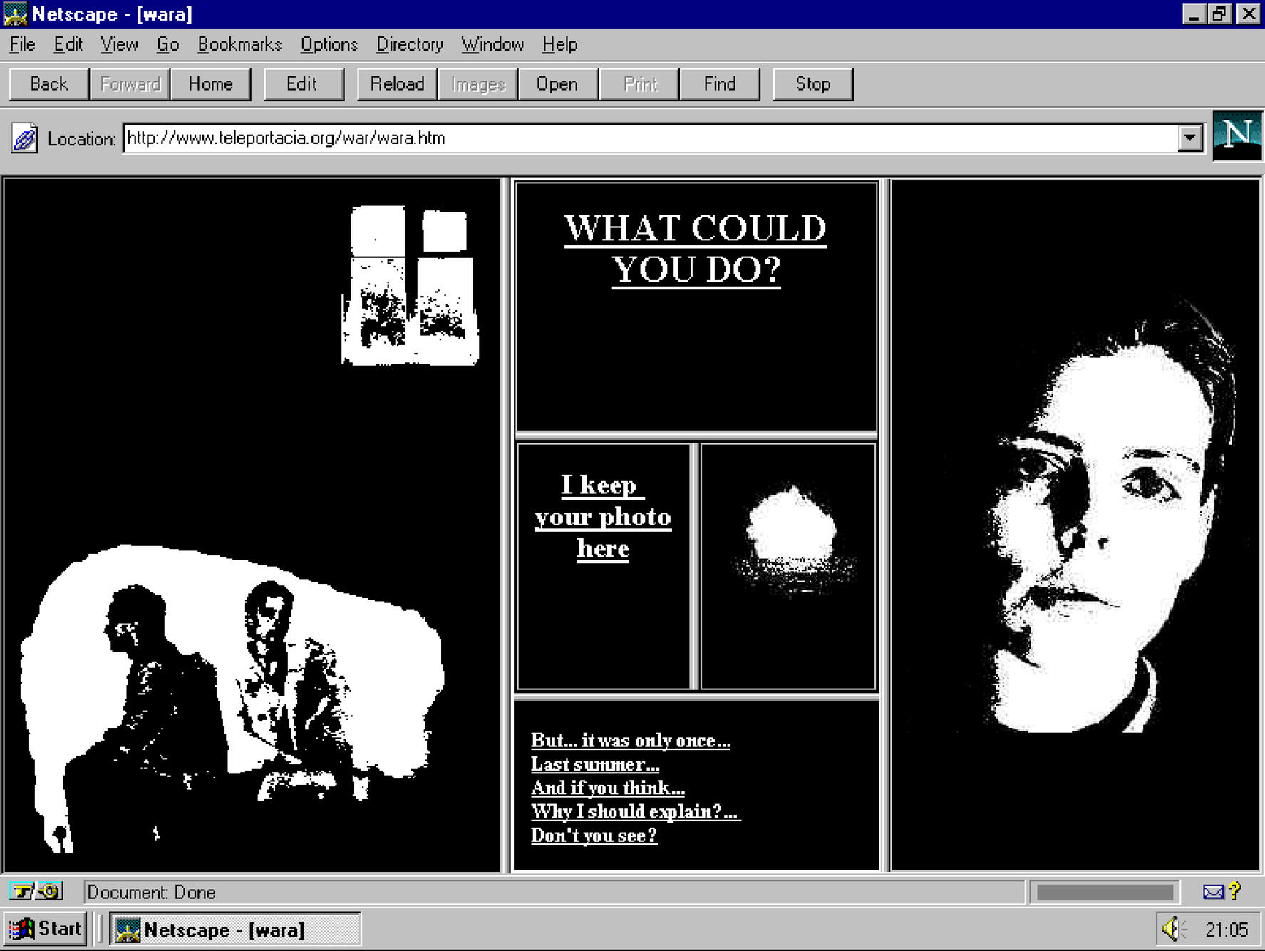 My Boyfriend Came Back From The War (1996) - Olia Lialina [presented in 2016, exhibited using emulation and legacy hardware]